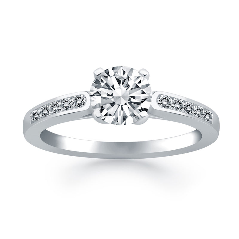 14k White Gold Diamond Channel Cathedral Engagement Ring