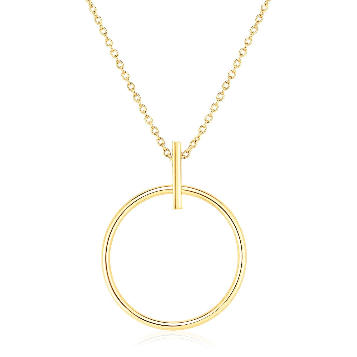 14k Yellow Gold 17 inch Necklace with Polished Ring Pendant