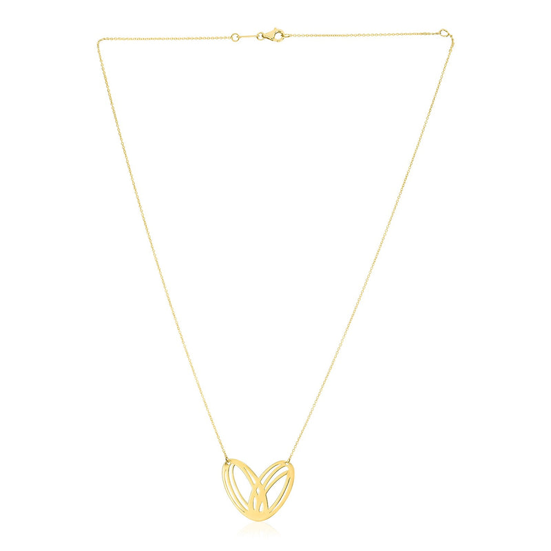 14k Yellow Gold High Polish Large Loopy Heart Necklace
