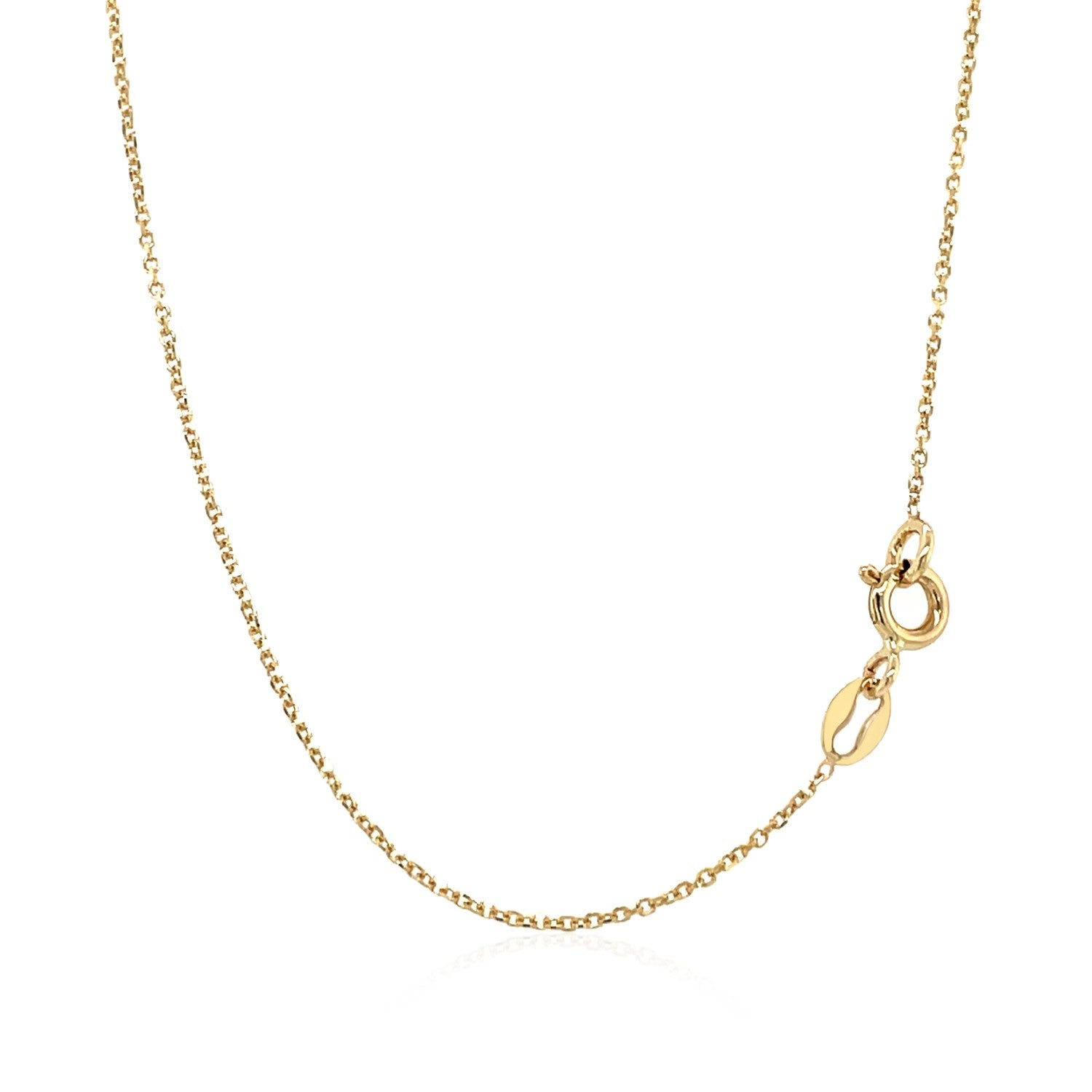 A delicate outline of a triangle beautifully decorates a classic 14k yellow gold necklace. Necklace is 17 inches long and closes with a spring ring clasp.