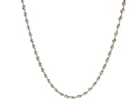 This solid diamond cut rope chain comes in 14k white gold and has a width of 2.5 millimeters.