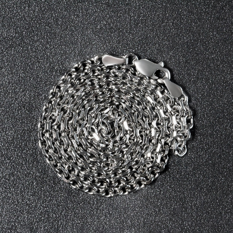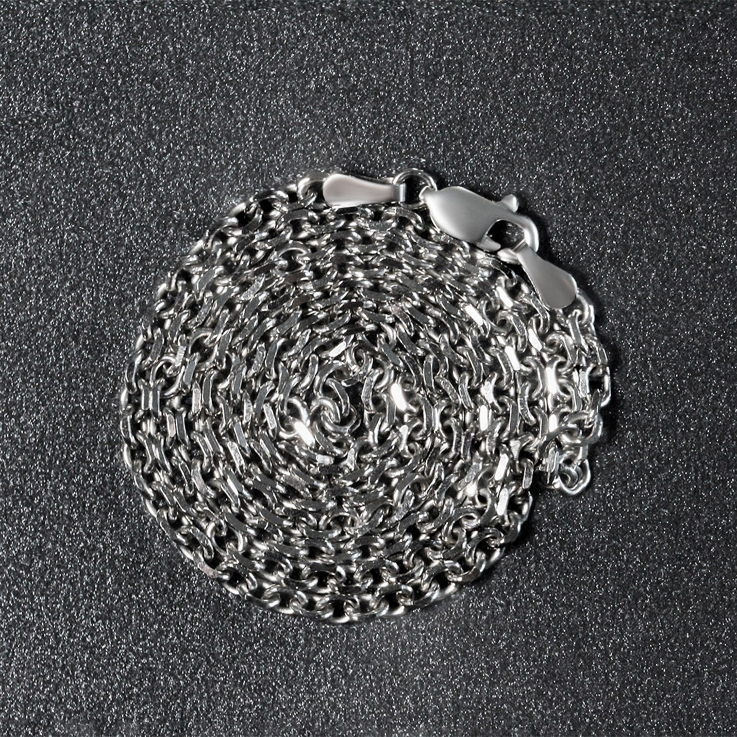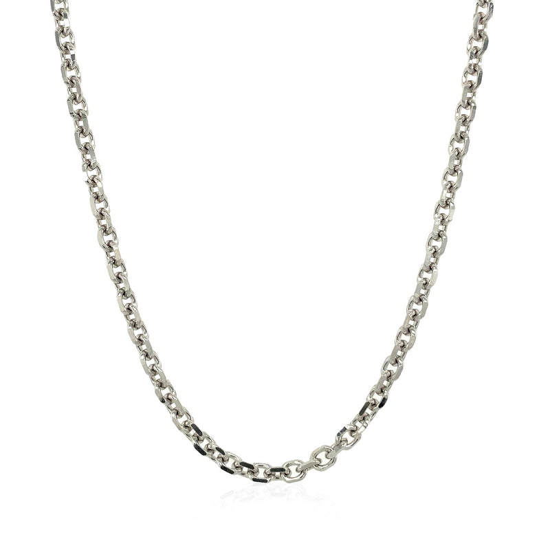 This diamond cut cable link chain comes in 14k white gold and has a width of 3.1 millimeters.