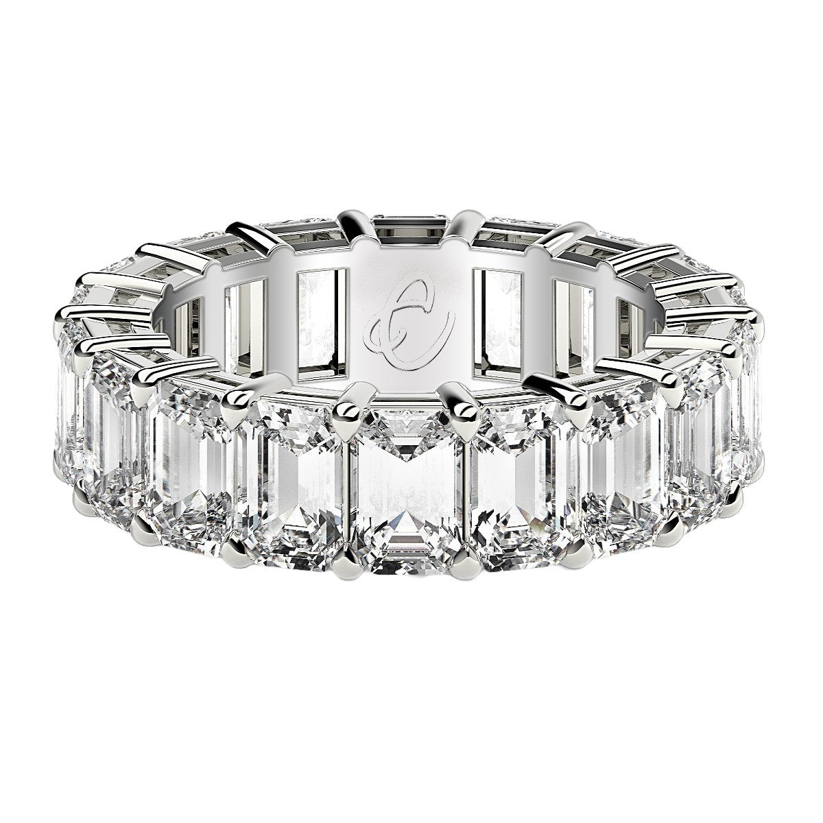 This dramatic eternity band features the traditional shine of 14k white gold, and the unparalleled sophistication of beautiful prong-set emerald cut lab grown diamonds. The light it radiates is as eternal and bright as the emotion it symbolizes. This ring belongs to the Eternity Us collection.
