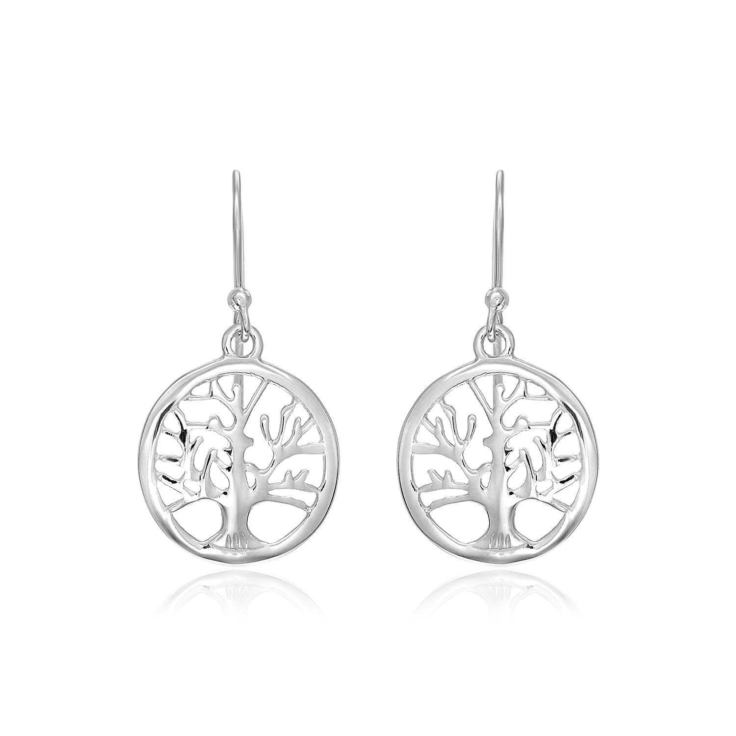 Sterling Silver Round Tree of Life Earrings