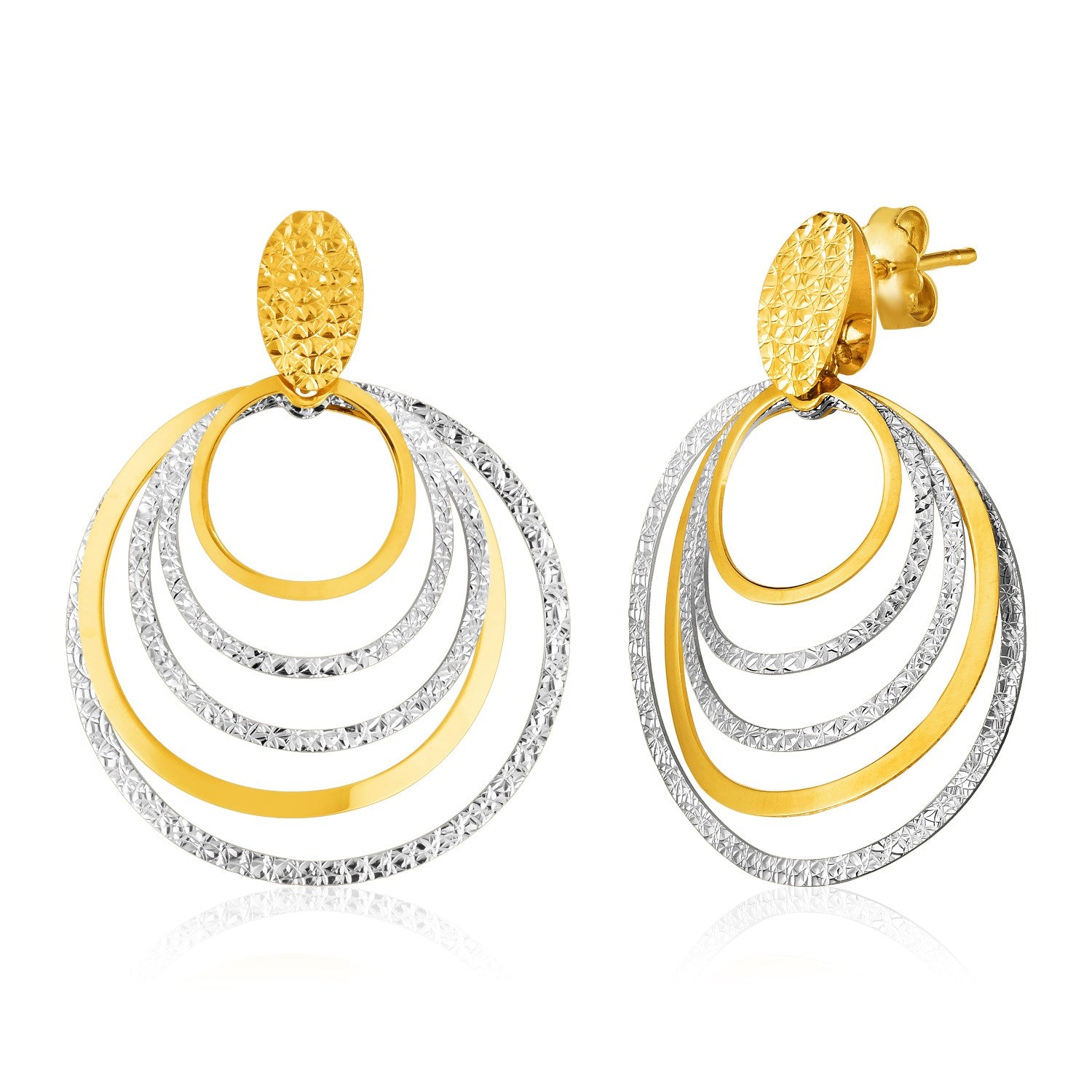 14k Two Tone Gold Post Earrings with Graduated Circles