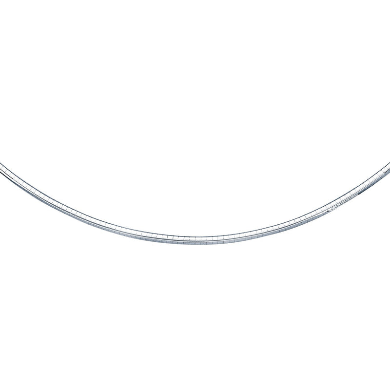 A classic omega chain is radiating contemporary beauty crafted in superb 14k white gold this piece is available in sizes 16 inches, 18 inches, and 20 inches.