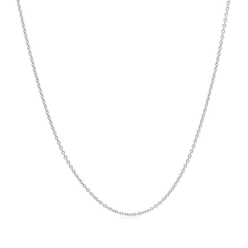 This oval cable link chain comes in 14k white gold and has a width of 0.6 millimeters.