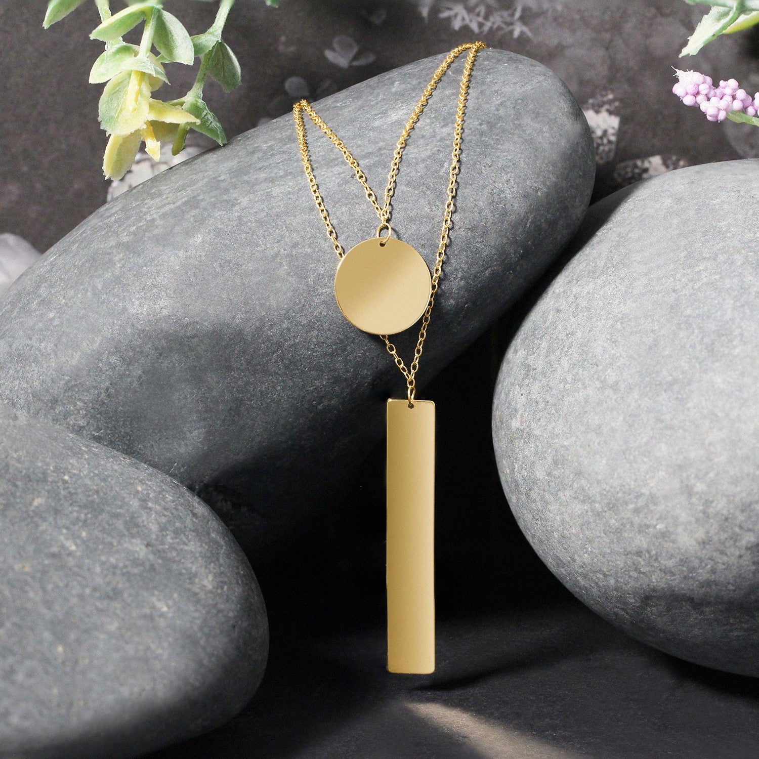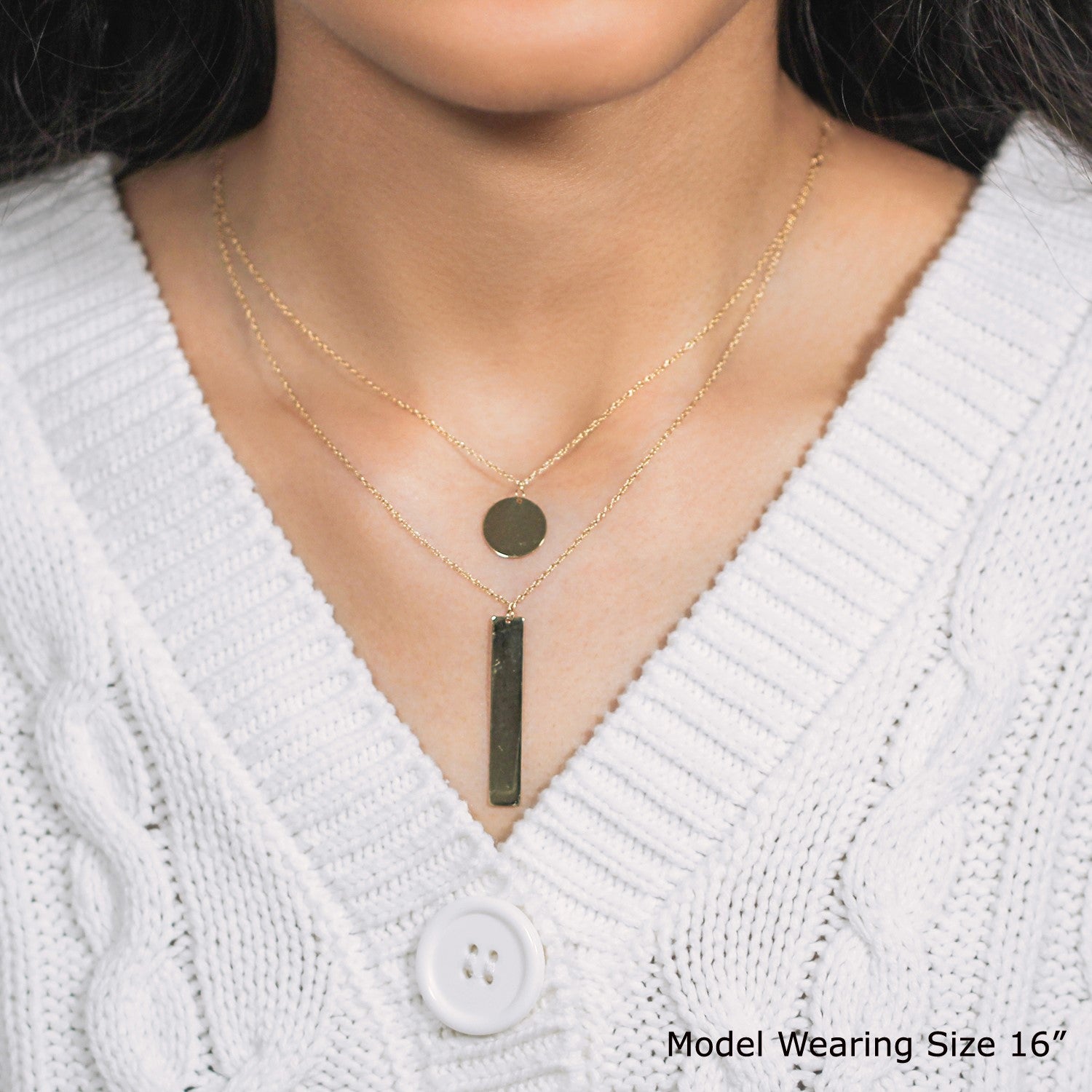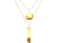 14k Yellow Gold 18 inch Two Strand Necklace with Circle and Bar Pendants