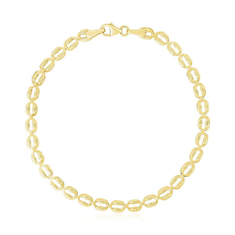 14k Yellow Gold High Polish Textured Puffed Oval Link Bracelet (3.8mm)