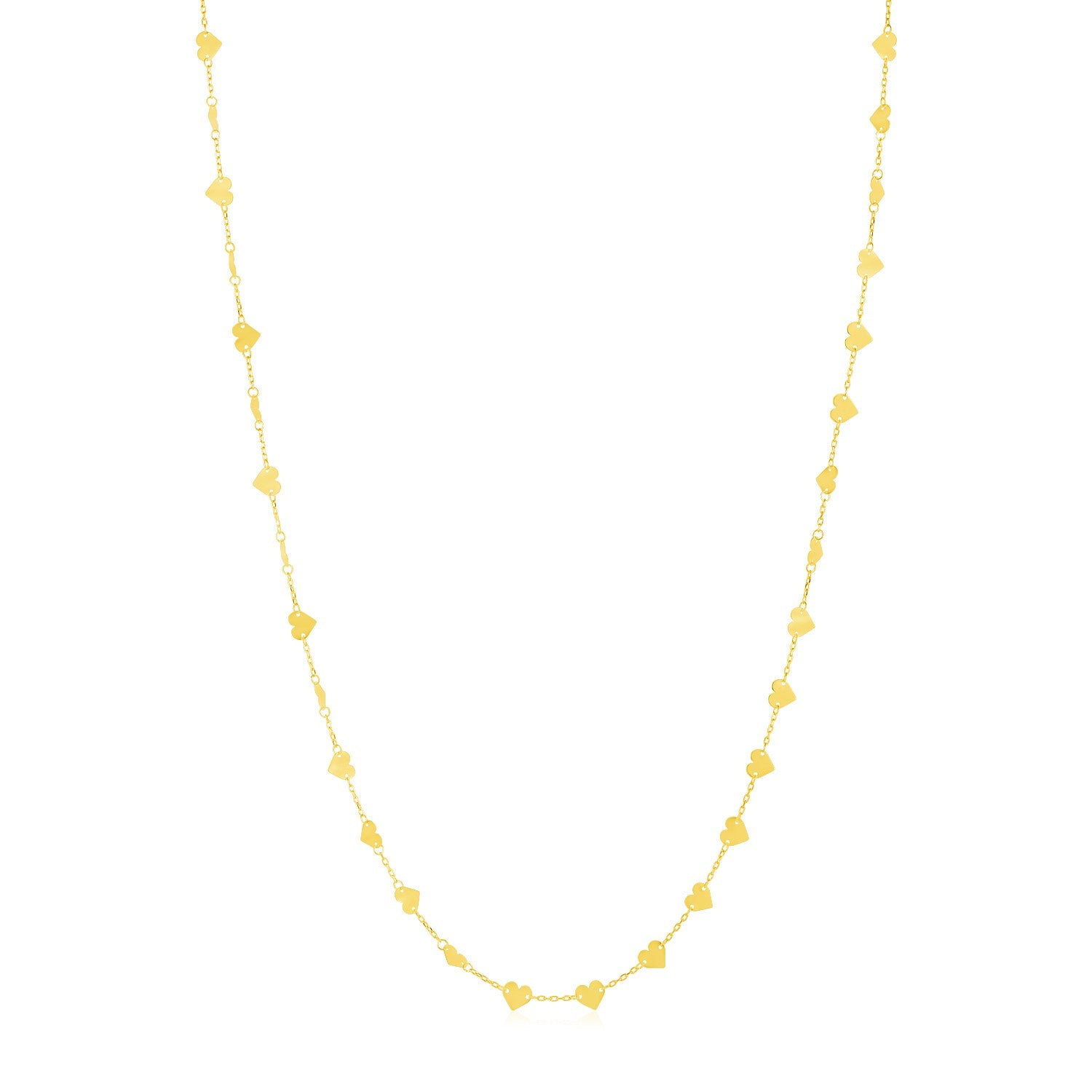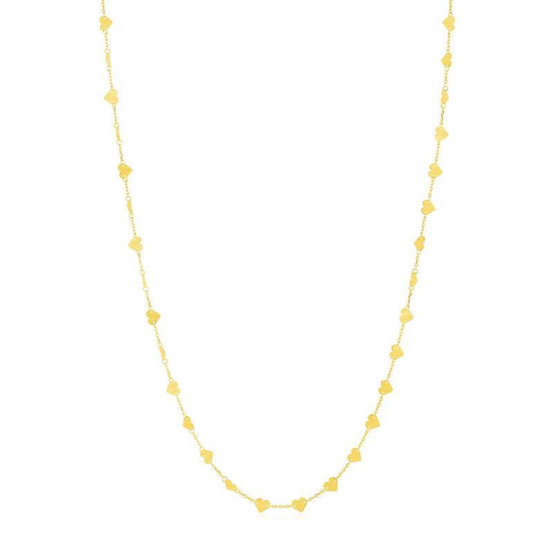 14k Yellow Gold Long Mirrored Heart Chain Station Necklace