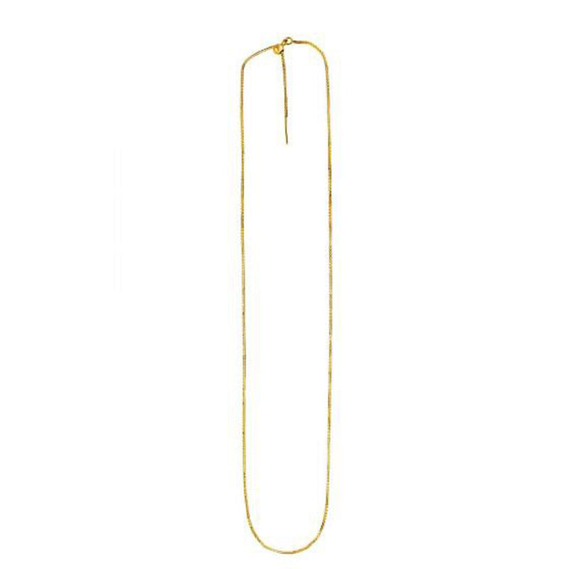 Endless adjustable box chain crafted in 14k yellow gold measuring 0.95 millimeters in width. Adjustable up to 22 inches in length and secured with a Draw String clasp.