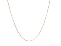 This cable link chain comes in 10k rose gold and has a width of 0.5 millimeters.