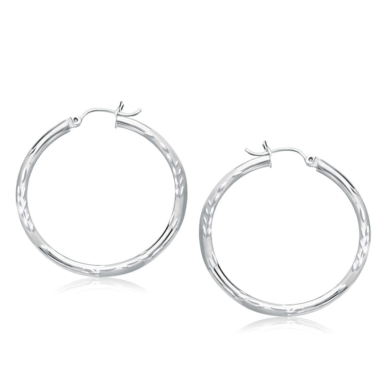 14k White Gold Fancy Diamond Cut Hoop Earrings (35mm Diameter)