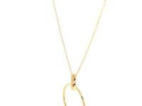 A delicate ring of gold hangs beautifully from a lovely chain in this exquisite 14k yellow gold necklace. Necklace is 17 inches long and closes with a lobster clasp.