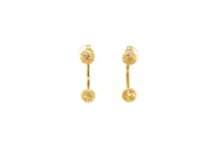 Two spheres with intricate diamond cuts form the front and lower sections of these darling double-sided earrings. Made of 14k yellow gold and secured with push backs.