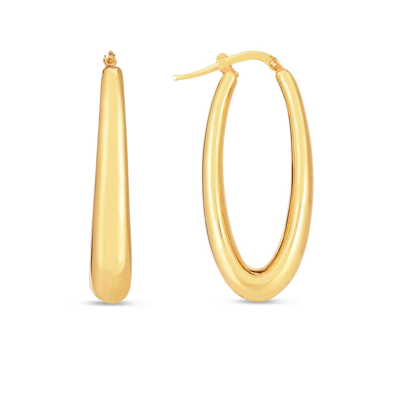 14k Yellow Gold Elongated Oval Hoops