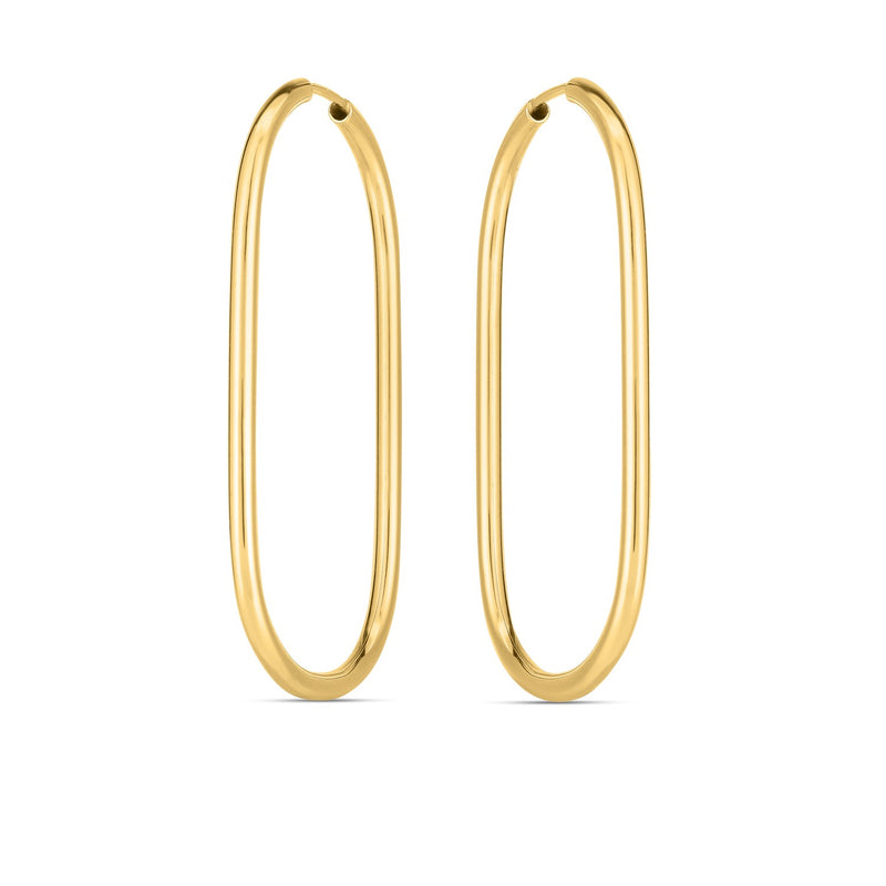 These Large Paperclip hoop earrings are the perfect unique design. Great for everyday wear. Crafted in 14k yellow gold with a high polish finish & an endless hoop closure.