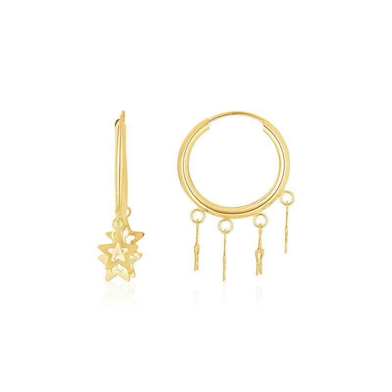 14K Yellow Gold Endless Star Charm Huggie Hoop Earrings