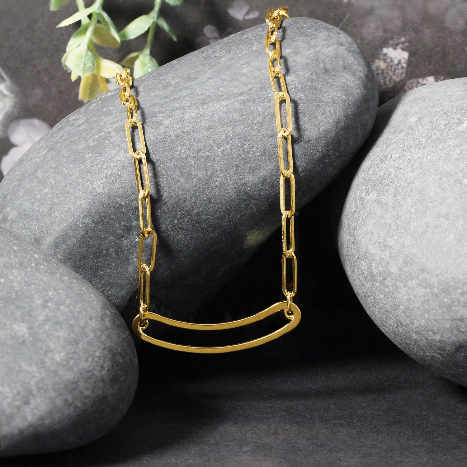 14k Yellow Gold High Polish Open Curved Paperclip Necklace