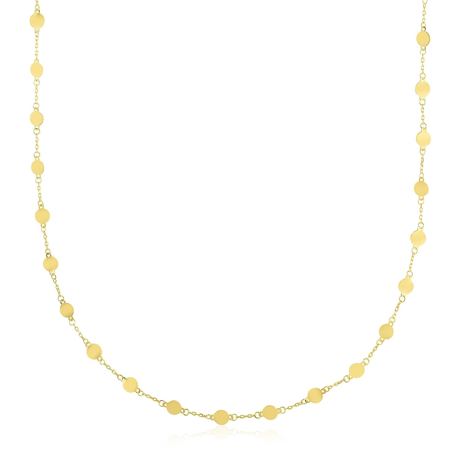 14k Yellow Gold High Polish Round Mirror Chain Station Necklace