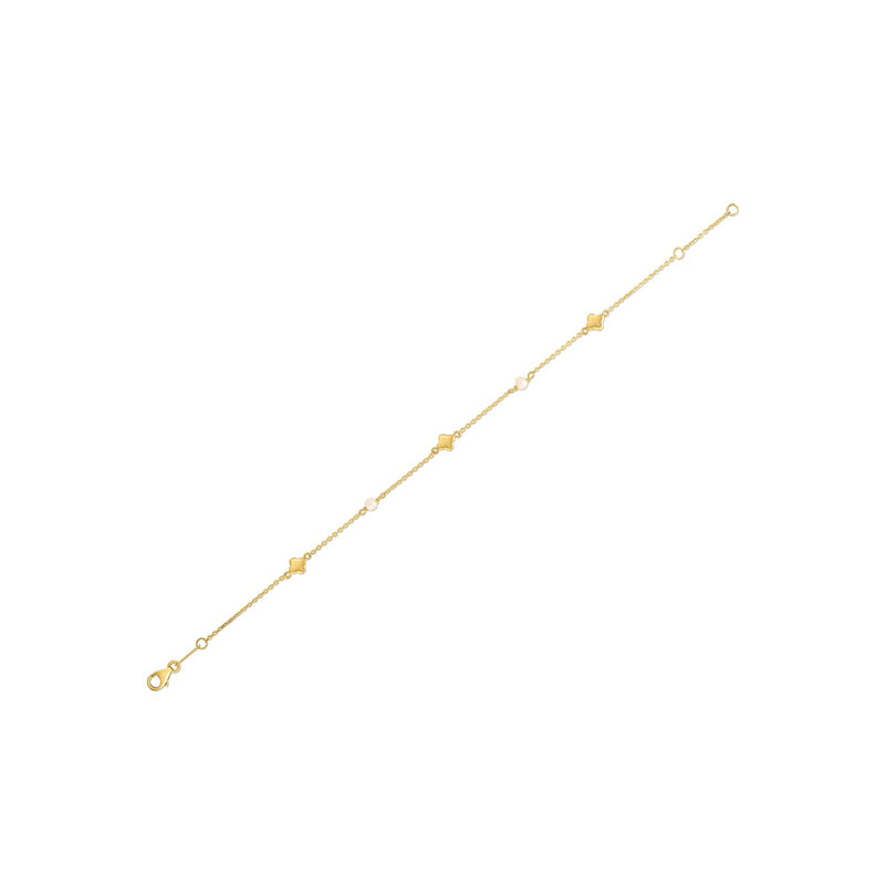This Pearl Clover bracelet is beautifully crafted in 14k yellow gold with a high polish finish and closes with a lobster clasp. A classic spin on one of the most popular styles. Measuring 7 inches in length.