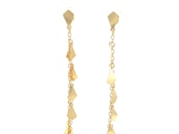 Shiny, polished diamond-like shapes of 14K yellow gold swing elegantly from fine chain to create these versatile, exquisite dangle earrings. Post earrings measure 4.4x68.5mm and are held in place by pushback clasps.