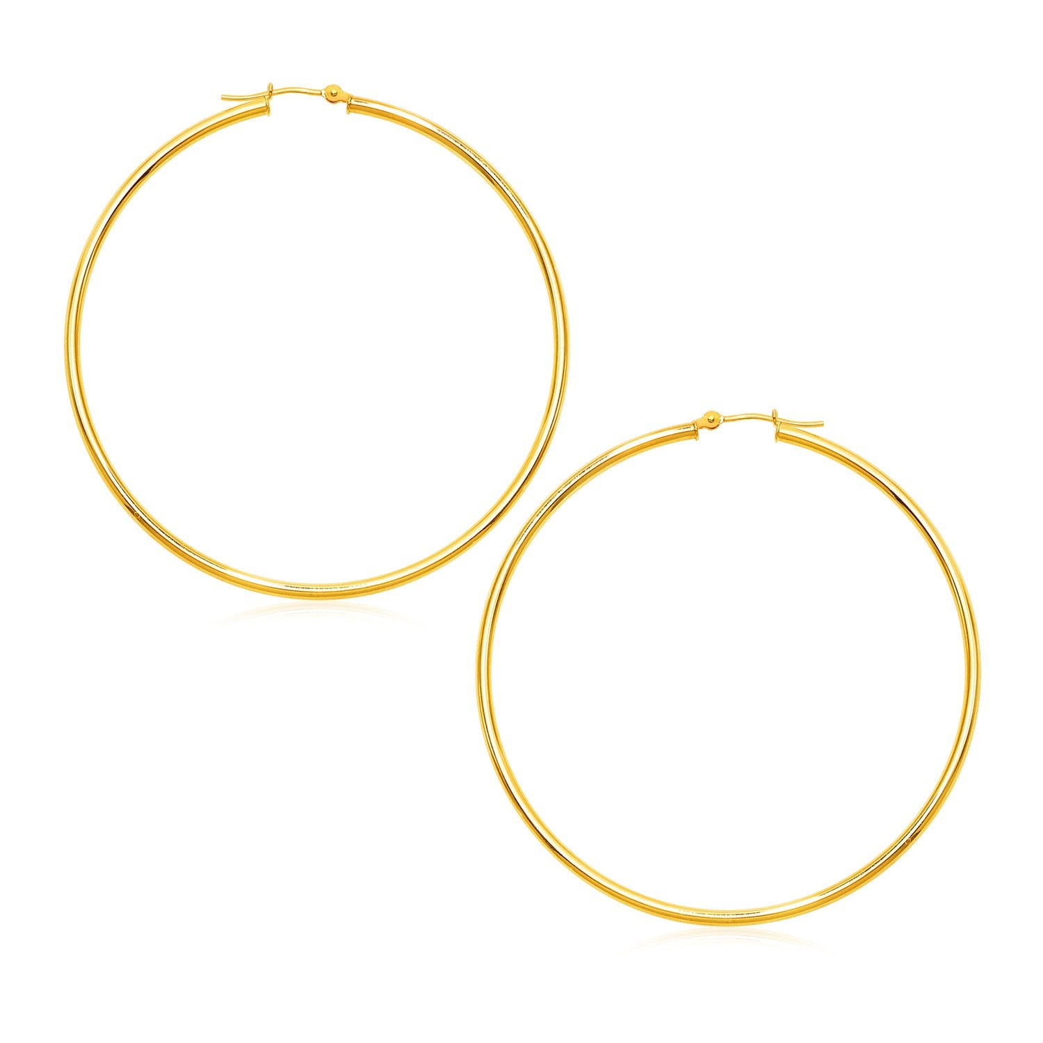 14k Yellow Gold Polished Large Round Hoop Earrings