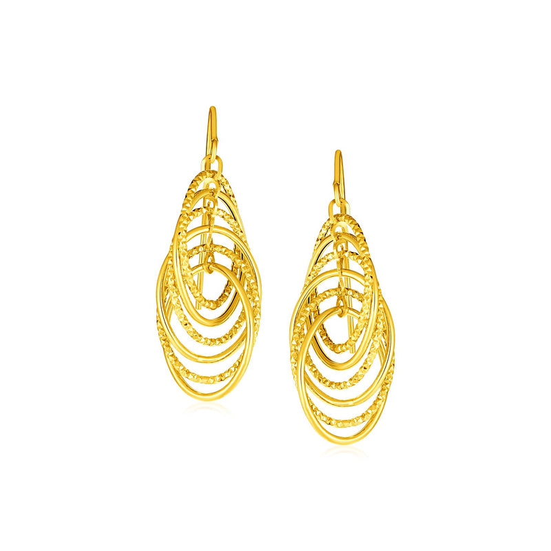 Arcs of reflected light dance across the oval shapes in these eye-catching and versatile 14k yellow gold earrings. Earrings are 30mm long and are held in place by pushback clasps.