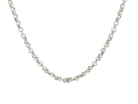 This rolo chain comes in 10k white gold and has a width of 2.3 millimeters.