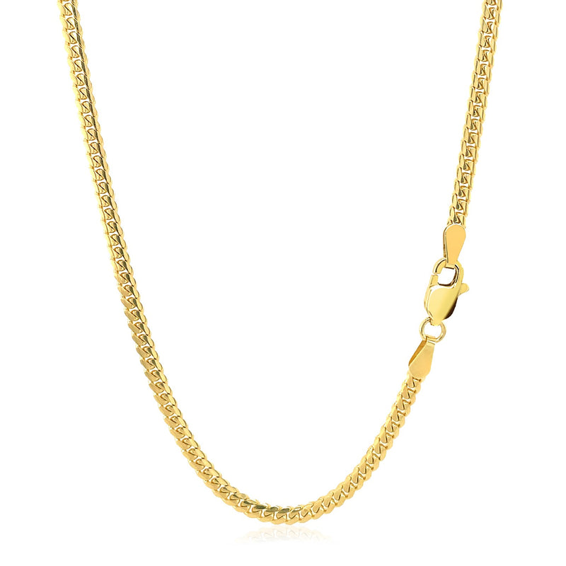2.6mm 14k Yellow Gold Classic Solid Miami Cuban Chain