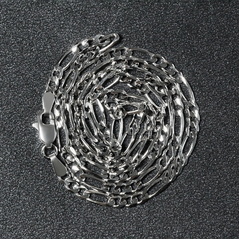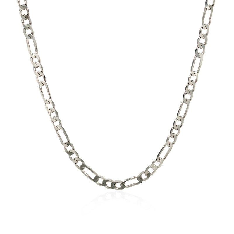 This solid Figaro chain comes in 14k white gold and has a width of 3.0 millimeters.
