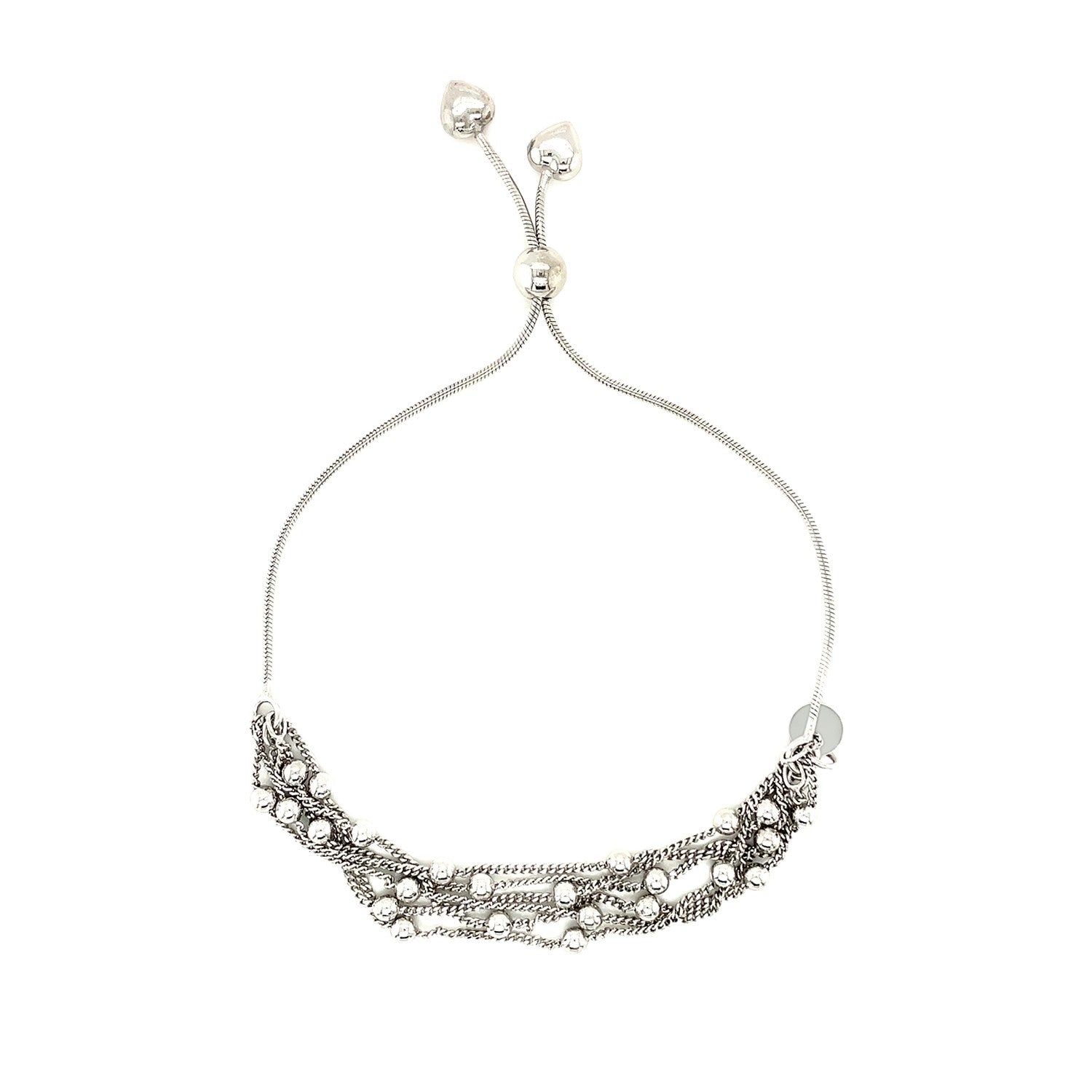 Adjustable Multi-Strand Chain and Bead Bracelet in Sterling Silver