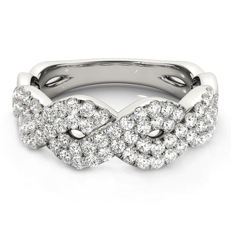 Diamond Studded Interlocking Waves Ring in 14k White Gold (5/8 cttw)