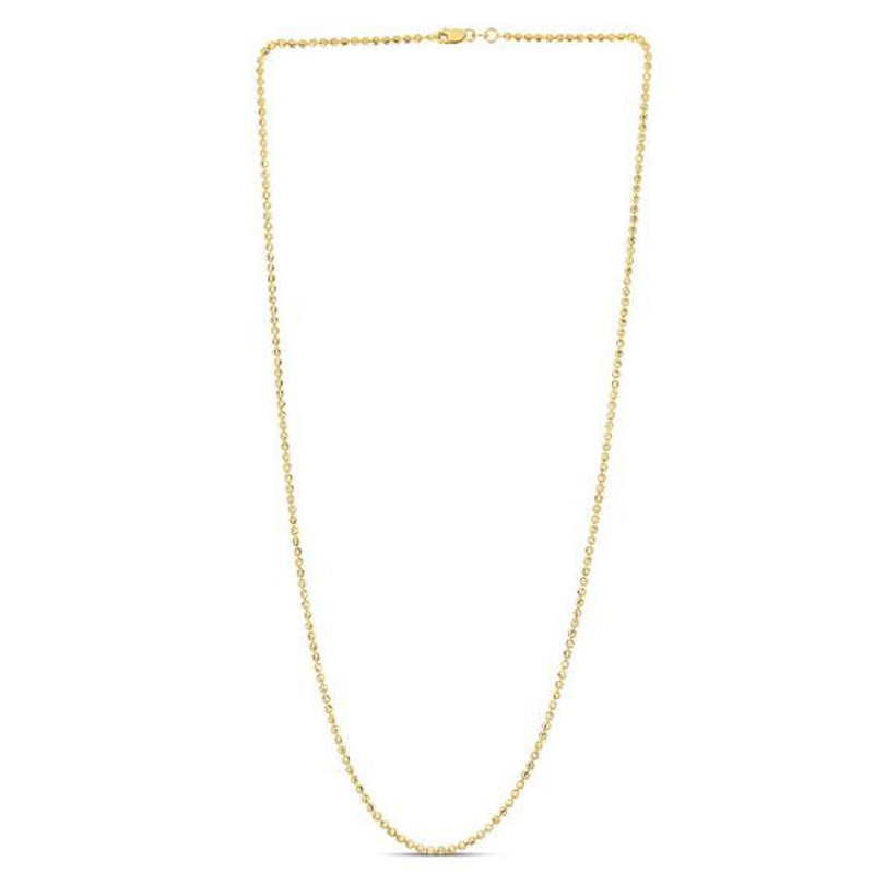Moon cut bead chain crafted in 14k yellow gold measuring 2.0 millimeters in width. Available in lengths 16 inches, 18 inches, 20 inches and 24 inches.