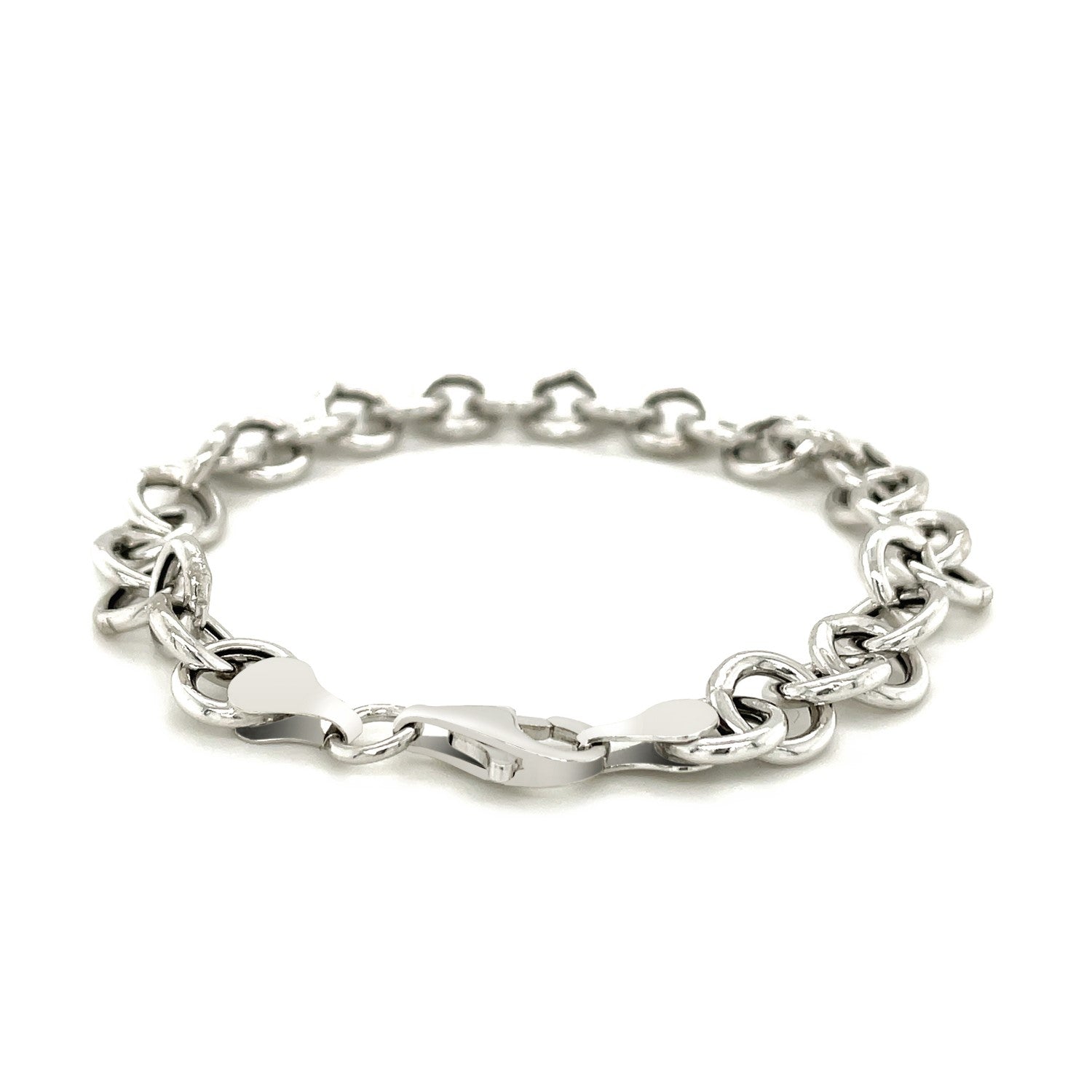 Sterling Silver Rolo Style Polished Charm Bracelet with Rhodium Plating